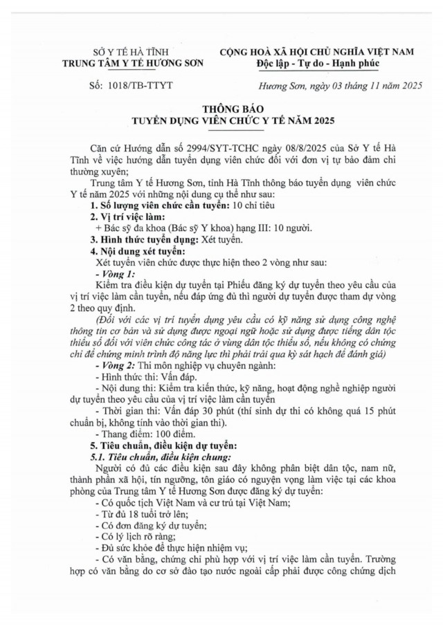 Chiều 01/10/2025, Trung tâm Y tế Hương Sơn tổ chức buổi gặp mặt, chia tay các viên chức, người lao động nghỉ hưu theo...